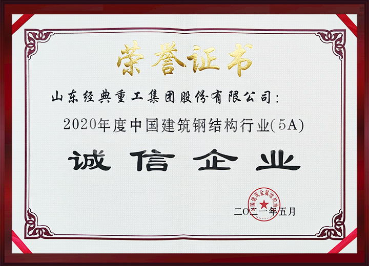 中國建筑金屬結(jié)構(gòu)協(xié)會(huì)通報(bào)2020年度建筑鋼結(jié)構(gòu)行業(yè)競(jìng)爭(zhēng)力50強(qiáng)企業(yè),公司位列17位;榮獲2020年度中國建筑鋼結(jié)構(gòu)行業(yè)(5A)誠信企業(yè)。