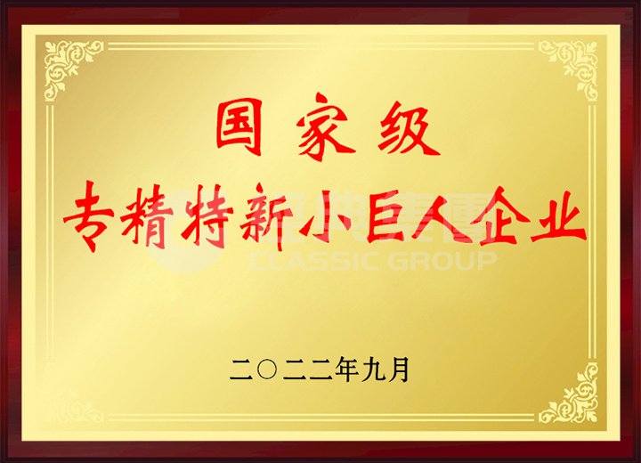 經(jīng)典集團(tuán)入選第四批國家級(jí)專精特新小巨人企業(yè)。