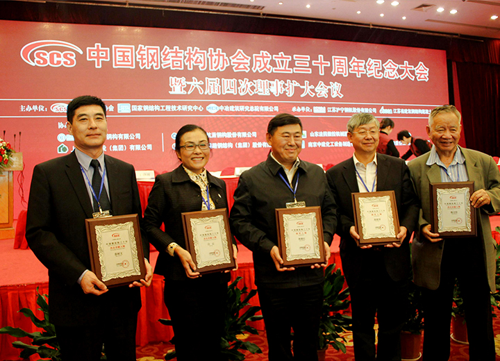 參加中國鋼結(jié)構(gòu)協(xié)會(huì)成立三十周年紀(jì)念大會(huì)當(dāng)選常務(wù)理事單位,榮獲首批全國鋼結(jié)構(gòu)行業(yè)AAA級(jí)信用企業(yè)、中國鋼結(jié)構(gòu)行業(yè)杰出貢獻(xiàn)人物、2014年度鋼結(jié)構(gòu)杰出人才獎(jiǎng)。
