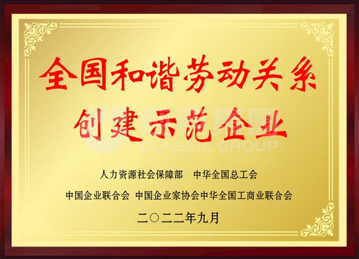 經(jīng)典集團(tuán)入選全國和諧勞動(dòng)關(guān)系創(chuàng)建示范企業(yè)。