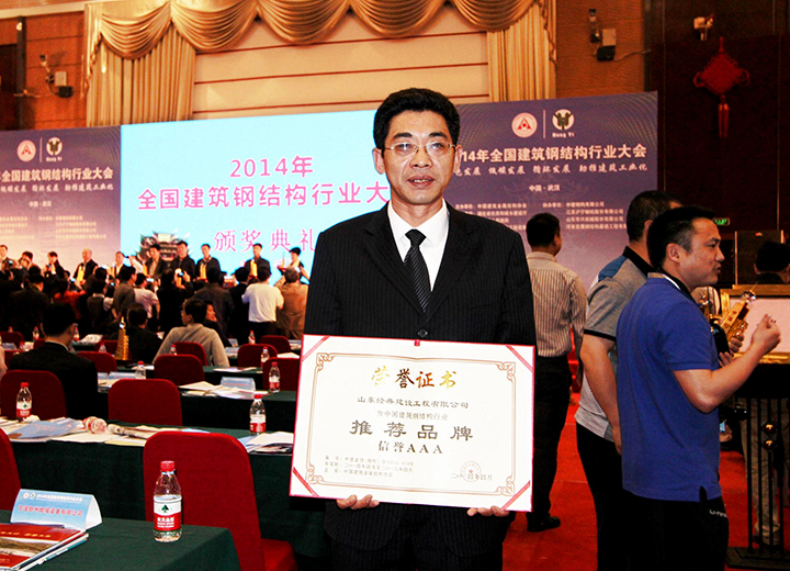 經(jīng)典建設(shè)公司被授予2014-2016年中國建筑鋼結(jié)構(gòu)行業(yè)推薦品牌信譽(yù)AAA企業(yè)。
