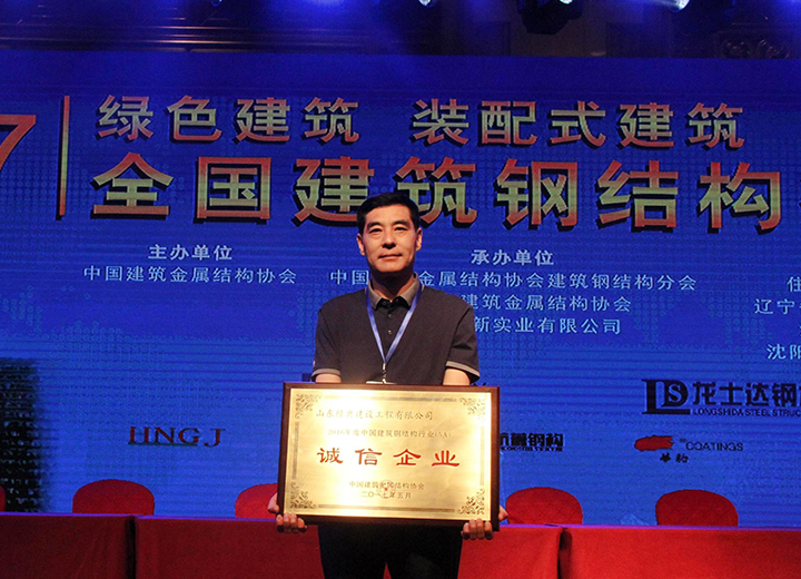 公司榮獲2016年度中國建筑鋼結(jié)構(gòu)行業(yè)(5A)誠信企業(yè)稱號(hào)。