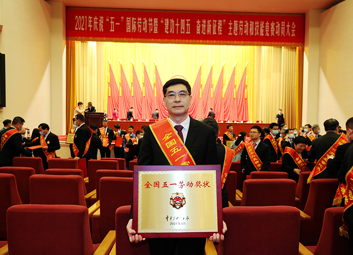 公司榮獲全國五一勞動(dòng)獎(jiǎng)狀,集團(tuán)董事長苗樹文登臺(tái)領(lǐng)獎(jiǎng)。