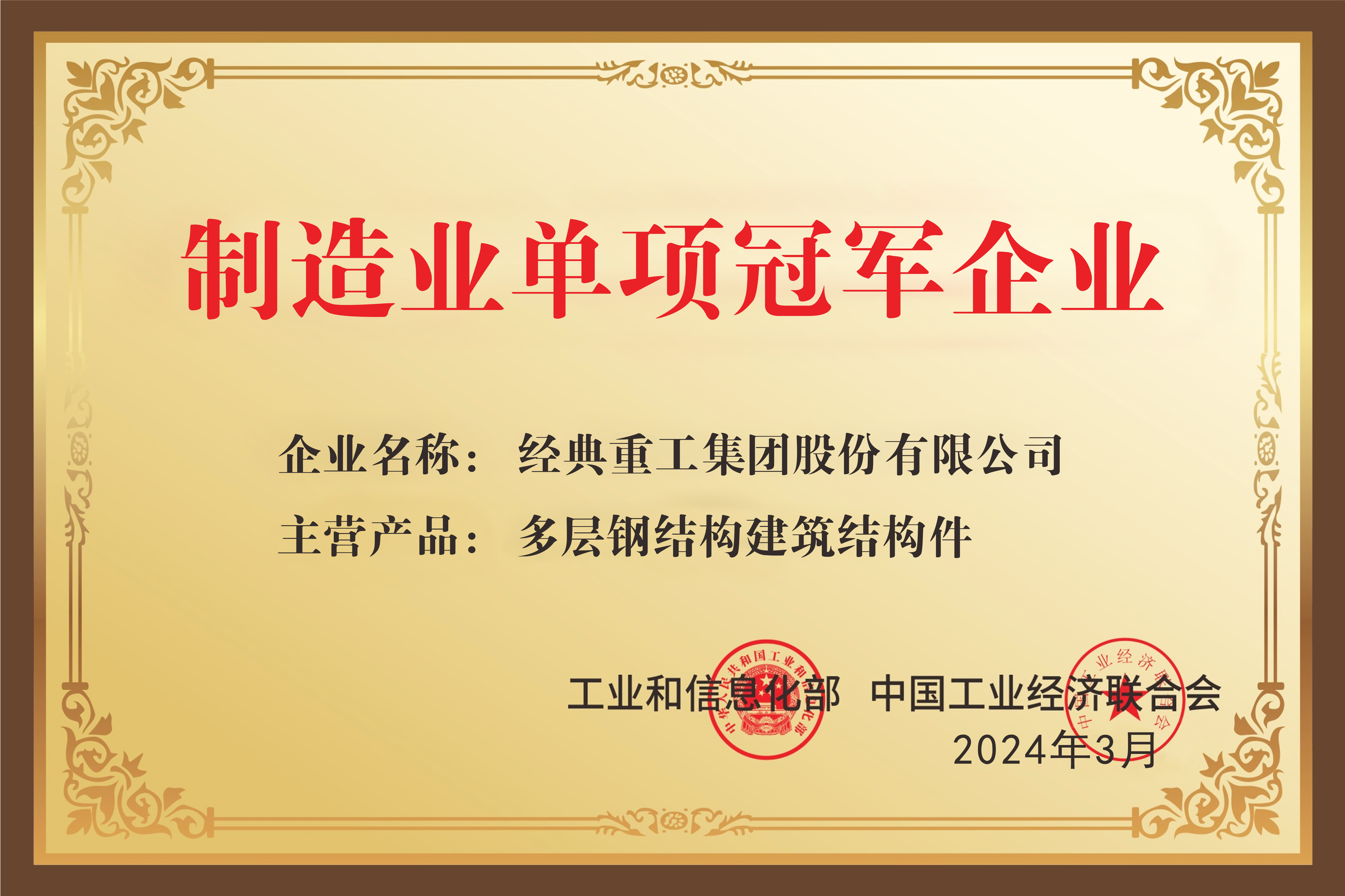 經(jīng)典集團(tuán)榮獲“國家級(jí)制造業(yè)單項(xiàng)冠軍示范企業(yè)”稱號(hào)。