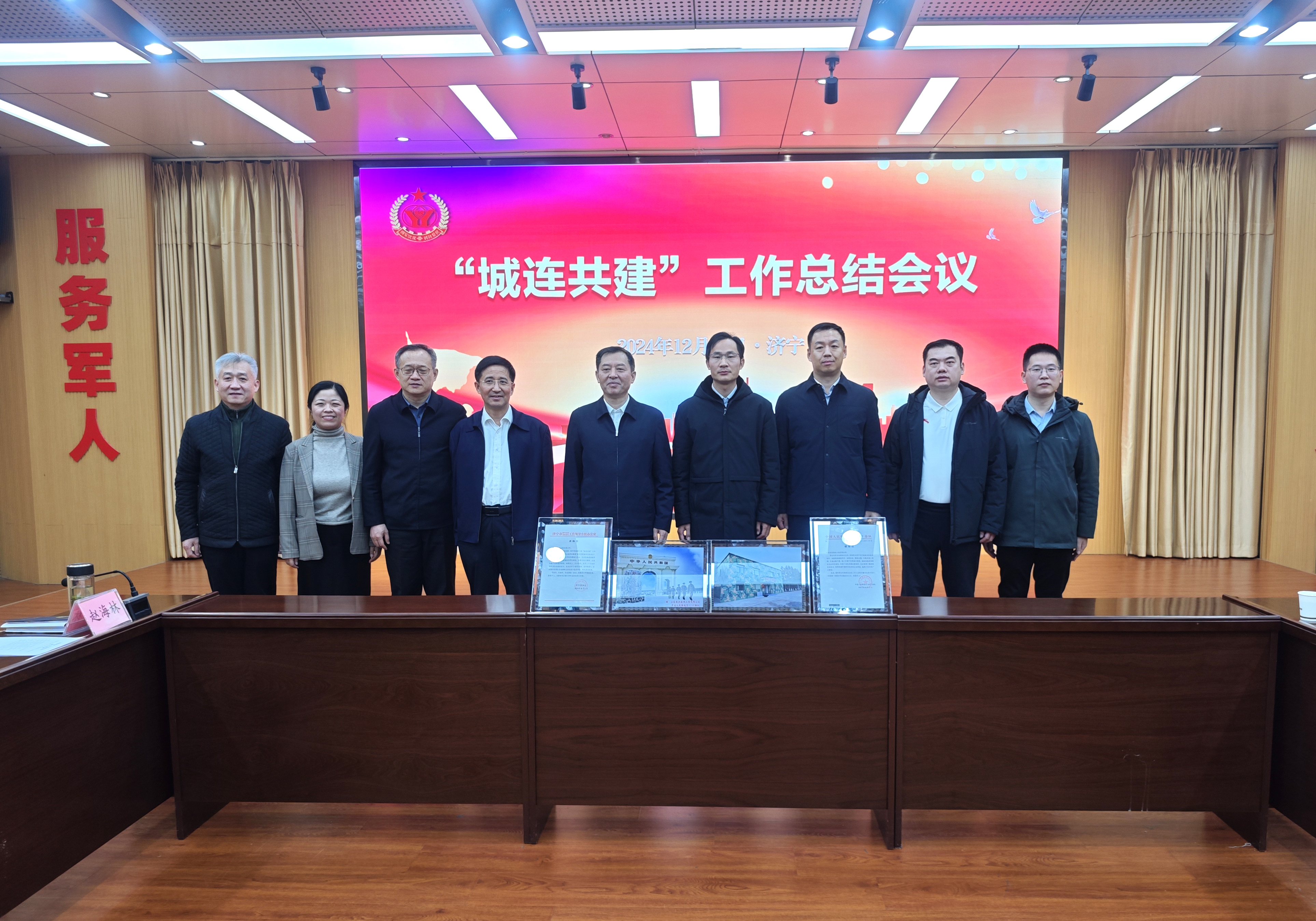 濟(jì)寧市“城連共建”工作總結(jié)會(huì)議召開,濟(jì)寧市人民政府副市長、市公安局局長、一級(jí)巡視員李海洋現(xiàn)場(chǎng)頒發(fā)了中國人民解放軍某部寫給山東經(jīng)典建設(shè)工程有限公司的感謝信、濟(jì)寧市雙擁辦的表揚(yáng)信。”