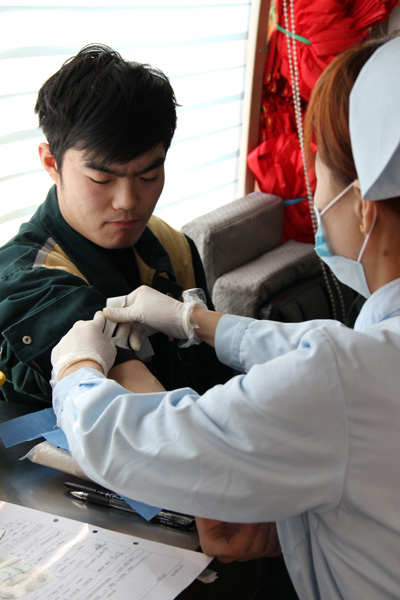 經過閱讀學習獻血基本常識,填寫登記表,例行體檢幾個環節后,志愿者們按順序登上了獻血車。他們在獻血時個個積極勇敢,情緒穩定,臉上洋溢著自豪的笑容,獻血結束后,在現場領取了濟寧市中心血站發放的無償獻血證。本次獻血活動有166名職工自愿報名參加,其中趙康、吳振興等志愿者更是有多次無償獻血的經歷。