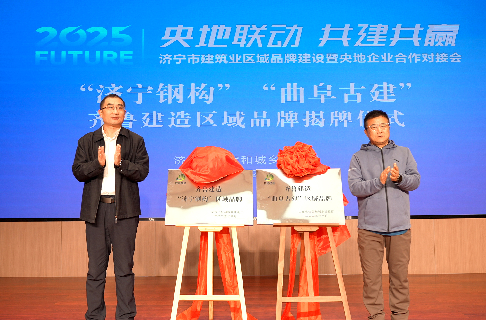 市住建局李振副局長、市建筑業(yè)協(xié)會郭志明會長共同為“濟寧鋼構”“曲阜古建”齊魯建造區(qū)域品牌揭牌