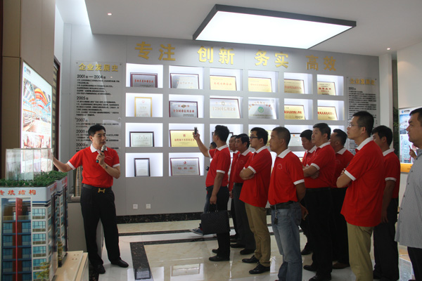 北京大學EMBA學員們興致勃勃地參觀了經(jīng)典集團的辦公樓、職工活動中心和生產(chǎn)車間。苗董事長向?qū)W員們重點介紹了集團公司的生產(chǎn)經(jīng)營、產(chǎn)學研合作、鋼結(jié)構(gòu)建筑施工、紅木辦公家具、智能3D電影院、智能會議中心、愛心超市等有關(guān)情況。北京大學EMBA學員們對經(jīng)典集團弘揚“經(jīng)典事業(yè) 讓愛傳承”為核心的企業(yè)文化、依靠科技進步實現(xiàn)企業(yè)跨越發(fā)展給予高度評價。