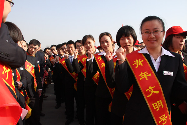 區(qū)領(lǐng)導(dǎo)王驍、初建偉、范國瑞、李勇、朱前春以及各團(tuán)組織負(fù)責(zé)人,青年文明號、青年志愿服務(wù)隊和省運(yùn)會青年志愿者代表1000多人參加了此次活動。