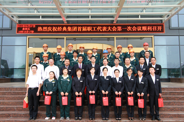 9月27日經(jīng)典集團首屆職工代表大會第一次會議在集團會議中心召開,集團公司董事長苗樹文,總經(jīng)理杜福生,工會主席高建國等工會領(lǐng)導(dǎo)及車間后勤職工代表35人參加了會議。